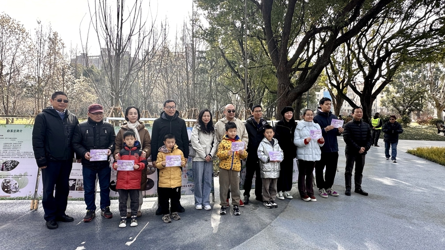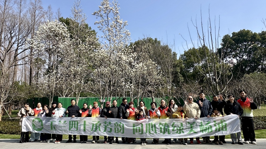 “玉兰四十承芳韵·同心筑绿美杨浦”2026年杨浦区市民认建认养挂牌仪式也在公园的玉兰庭举办。“老中青”三代10余位市民代表共同回顾了白玉兰当选上海市花40周年的“履职”故事,发出“爱绿、护绿、兴绿”的倡议。